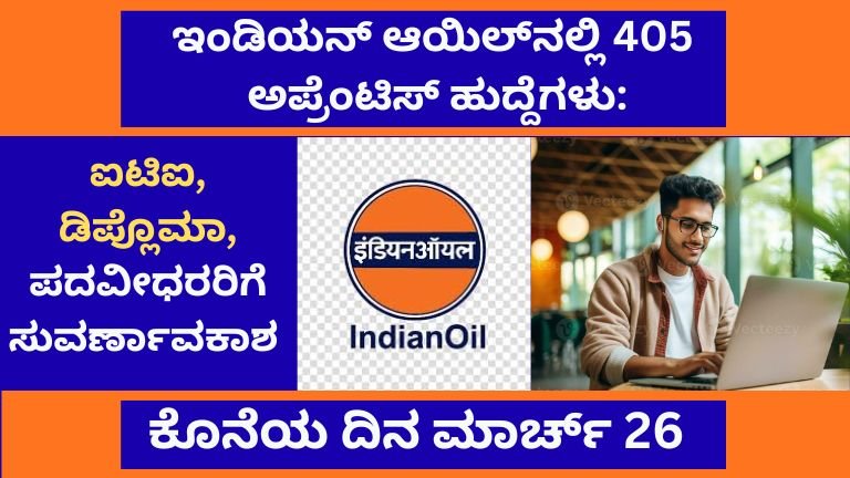 ಇಂಡಿಯನ್ ಆಯಿಲ್ ಕಾರ್ಪೊರೇಷನ್ ಲಿಮಿಟೆಡ್ ನೇಮಕಾತಿ 2026: 405 ಅಪ್ರೆಂಟಿಸ್ ಹುದ್ದೆಗಳು – ಐಟಿಐ, ಡಿಪ್ಲೊಮಾ, ಪದವೀಧರರಿಗೆ ದೊಡ್ಡ ಅವಕಾಶ