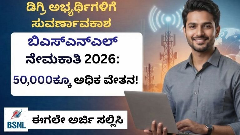 ಬಿಎಸ್‌ಎನ್‌ಎಲ್ ನೇಮಕಾತಿ 2026: 120 ಹುದ್ದೆಗಳ ಭರ್ಜರಿ ಸರ್ಕಾರಿ ಉದ್ಯೋಗ ಅವಕಾಶ ಸರ್ಕಾರಿ ಉದ್ಯೋಗವನ್ನು ಪಡೆಯಲು ಬಯಸುವ ಯುವಜನತೆಗೆ ದೊಡ್ಡ ಅವಕಾಶ ಬಂದಿದೆ. ದೇಶದ ಪ್ರಮುಖ ದೂರಸಂಪರ್ಕ …